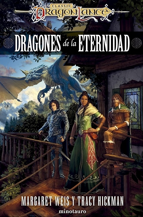 Dragonlance de la Eternidad es la tercera y última novela de la trilogía Dragones de la Eternidad, obra de Margaret Weis y Tracy Hickman. Si habéis leído las novelas anteriores, recordaréis que Destina Rosethorn, hija de un caballero de Solamnia, y el kender Tas viajaron atrás en el tiempo junto a Sturm y a Raistlin, y también con la Gemagrís, un artefacto capaz de cambiar la realidad. Debido a todo esto y a lo que sucede durante dicho viaje la Historia se ve comprometida, pues son alterados diversos sucesos cruciales del pasado, en concreto de la Tercera Guerra de los Dragones, en la que Huma derrotó a la Reina de la Oscuridad. Después de regresar a su propio tiempo, los viajeros se encuentran con un mundo distinto al que dejaron atrás, un mundo en el que la Reina de la Oscuridad no fue derrotada en la Tercera Guerra de los Dragones, un mundo que se encuentra sometido y dominado por Takishis y sus ejércitos.