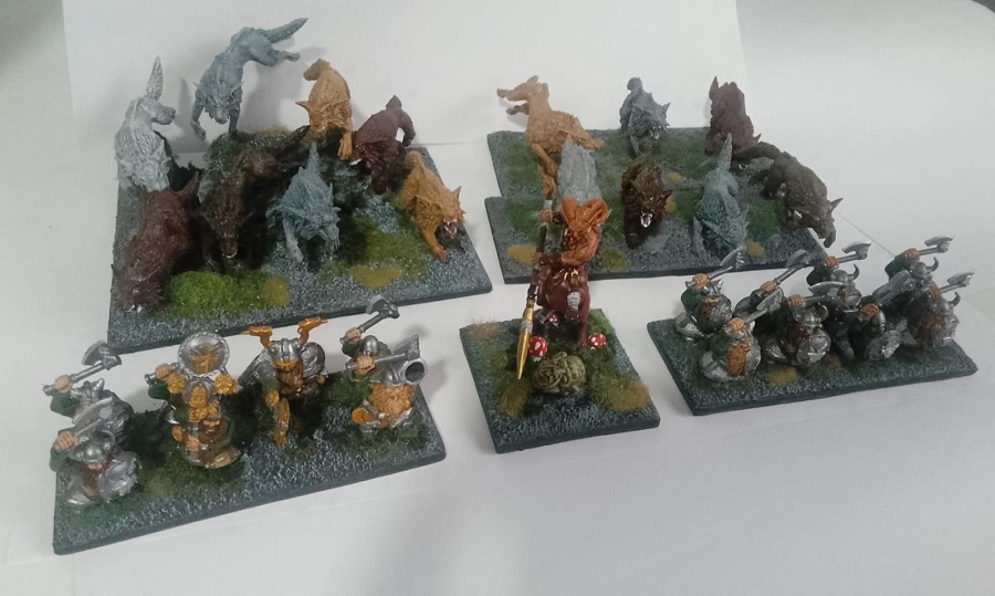 En esta ocasión he pintado un regimiento entero de guerreros enanos (aunque los he dividido en dos tropas), un regimiento completo de lobos y dos tropas también de lobos. Estas últimas unidades son repintadas, a decir verdad. Esos lobos eran las monturas de mis antiguos jinetes berserker enanos, ¡y llevaban muchísimo tiempo en la cola de pintura! Ahora, al fin, les ha llegado el turno, a falta de repintar a los jinetes, unos matadores piratas de GW. Todavía no sé si usaré las dos para caballerías de enanos, pues me estoy planteando dejar las tropas así y poder usarlas en ejércitos como Fuerzas de Naturaleza, Basilea (como panteras) o Alianza del Norte (mis Enanos del Norte). La cosa es que hace tiempo que no uso ninguno de estos ejércitos (el más reciente, Enanos del Norte, no lo uso desde que Ben y yo ganamos el torneo por parejas jugado en Asturias el ya pasado 2025). ¡Ya veré lo que hago!